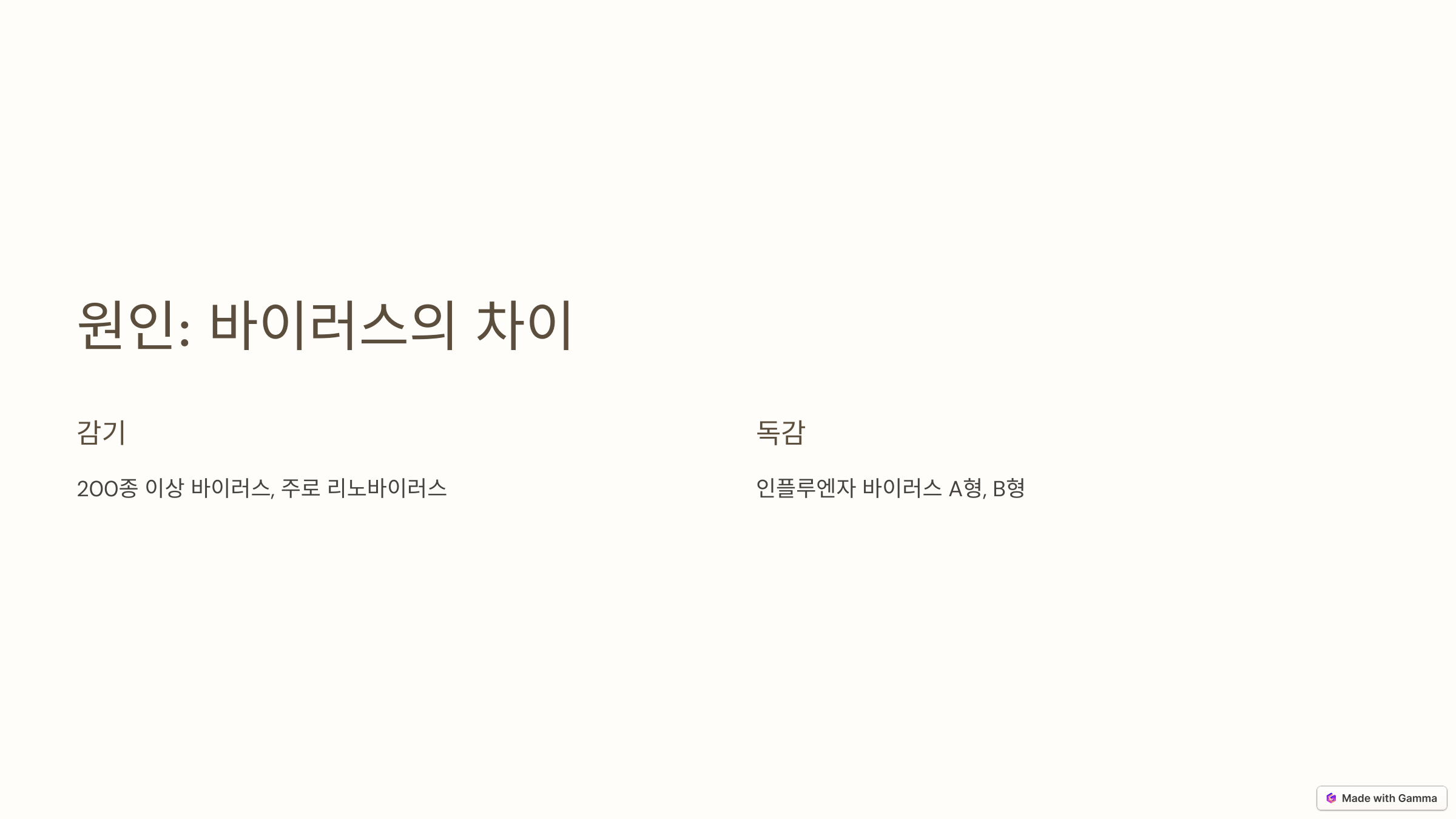 1. 원인: 바이러스의 차이 🔬