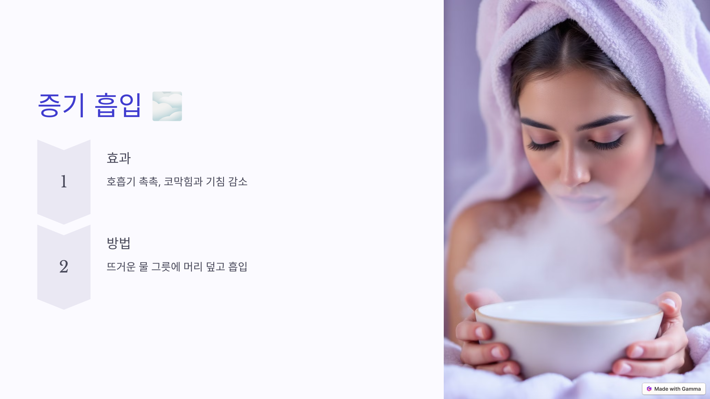 - 코와 입으로 천천히 증기를 흡입하세요.