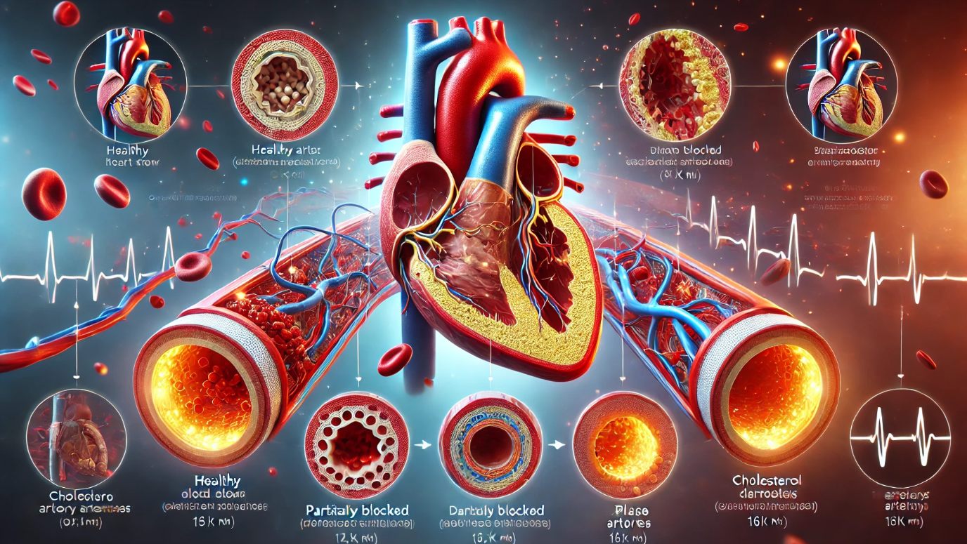 기름진 음식과 가공식품을 즐겨 먹으면 혈관에 플라크(plaque, 지방 찌꺼기)가 쌓이고, 동맥이 좁아져 혈류 공급이 원활하지 않게 됩니다.